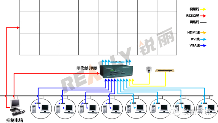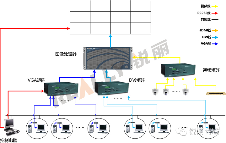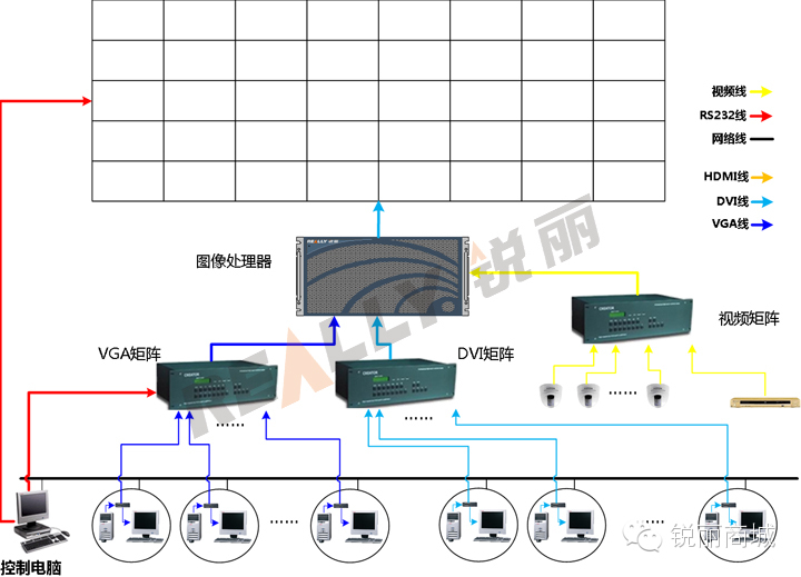 如果输入源较多,屏体数目少,需要配置图像控制器加矩阵
