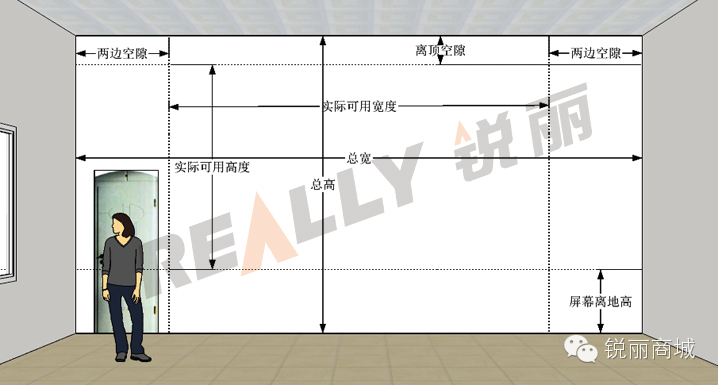 根据房间的大小,首先确定在哪一边放置大屏幕。量取该边的长与高,根据支架的类型决定两边的留空。